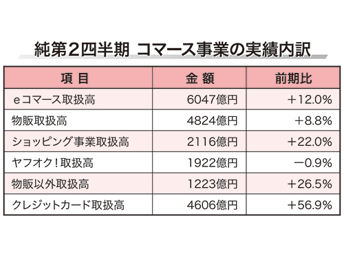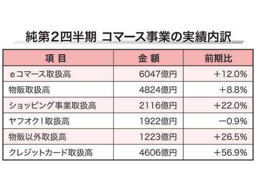 19年7―9月期(純第2四半期)におけるEC取扱高は同12.0%増の6047億円。そのうち、「ヤフーショッピング」などを含むショッピング事業の取扱高は同22.0%増の2116億円だった。