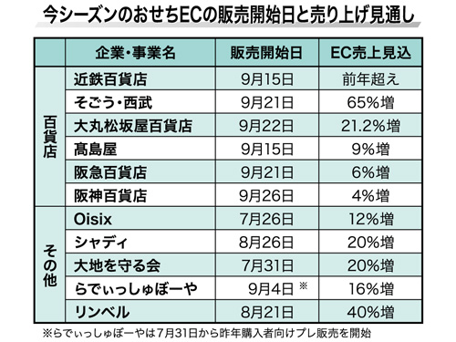 阪急百貨店・阪神百貨店を傘下に持つエイチ・ツー・オーリテイリングによると、今シーズンのおせち商戦のEC売上高の着地予測は、阪急百貨店が6%増、阪神百貨店が4%増だという。おせちの販売におけるECのシェアは、阪急百貨店が60%、阪神百貨店は45%となっている。