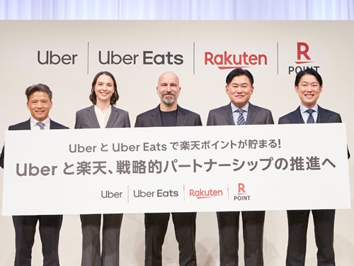 楽天グループは12月9日、Uber(ウーバー)グループとのパートナーシップをさらに推進すると発表した。配車サービス「Uber」や、フードデリバリーサービス「Uber Eats(ウーバーイーツ)」と楽天IDを連携することで、サービス利用に応じて「楽天ポイント」を付与する取り組みを開始する。