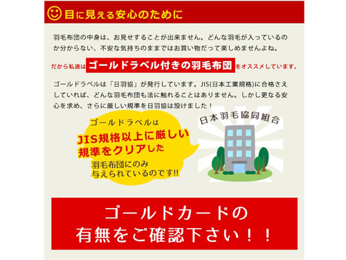 具体的な事実が発覚したわけではないが、羽毛布団メーカーなどで構成される日本羽毛製品協同組合(日羽協、事務局東京都、柳場弘会長)が調査したところ、欧米産羽毛の輸入量よりも国内で流通している欧米産羽毛布団の量が上回っていたという。産地を偽装した羽毛布団が、ECサイトや量販店で大量に販売されていた疑いが浮上した。