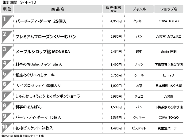 クッキーやケーキなどの菓子が6品目ランクインした。