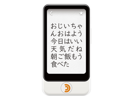 クラウド上のAIを用いた音声認識システムにより、会話内容を瞬時にテキスト化し表示。高齢者が使用することを想定し、従来より大きいサイズでの文字表示にも対応している。