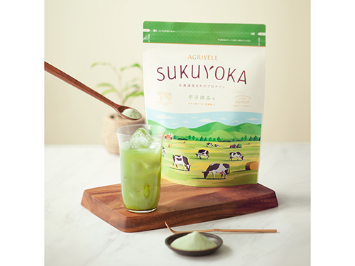 アグリエール(本社東京都、浅野恭弘社長)では、日本各地の生産者と共同で開発した食品の販売事業を行っている。21年10月には、北海道の酪農家と共創したブランド「SUKUYOKA(すくよか)北海道生まれのプロテイン宇治抹茶味」を自社ECサイトで発売した。北海道産ホエイを100%使用したプロテインとして注目が集まっているという。