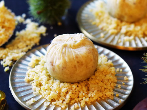 「岐阜の山に囲まれた地域で、昔から身近にあった栗という素材の奥深さに魅了され、栗菓子をテーマにしました。栗菓子は、四季を味わう日本の文化そのものだと考えており、単なるスイーツとしてではなく、旬の一粒に込められた生産者の努力や日本の美意識を感じられるようなお菓子づくりを目指しています。栗は熊本県産をはじめ、地元・岐阜県山県市産など全国の優れた栗産地のものを使っています。現地を訪ね、生産者さんの栽培方法や栗への向き合い方を見せていただいた上で、その年に最も香りと甘みのバランスがいい栗を選定しています」