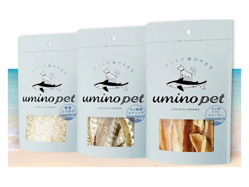 気仙沼産のフカヒレなどを展開する石渡商店(本社宮城県、石渡久師社長)は22年からペット事業に参入した。サメの肉や骨を使用したペット用おやつなど、計7種類を販売している。