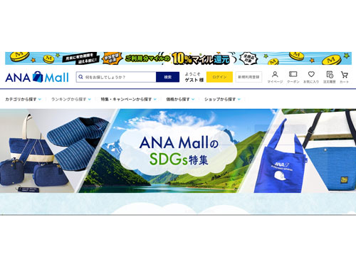 ANA X(本社東京都、神田真也社長)はこのほど、ECモール「ANA Mall(エイエヌエーモール)」において「SDGs特集」を開設した。