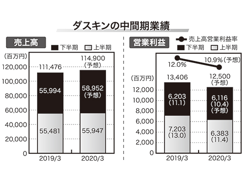 ダスキンがこのほど発表した19年4―9月期(中間期)決算説明会の資料によると、訪販グループにおける家庭向け(ホームサービス)「ダストコントロール商品(全体)」の売上高は前年同期比0.3%減、モップ全体では同3.9%減だった。