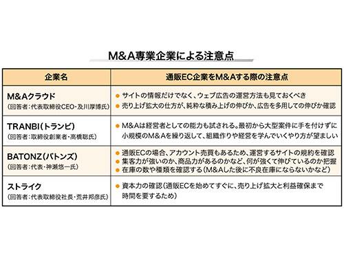 M&Aを専業に展開する主要4社に、通販・EC業界におけるM&Aの動向について調査したところ、今後もM&Aが増えていく市場と予測している。