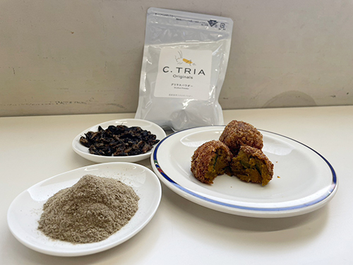 食用コオロギの生産やECなどを行うグリラス(本社徳島県、渡邉崇人社長)は11月28日、徳島県立小松島西高等学校で提供される学校給食への、国産食用フタホシコオロギ粉末「グリラスパウダー」の供給を行った。同校の生徒が考案した「グリラスかぼちゃコロッケ」が、在校生約170人に提供された。同メニューは、食べるか否かを選択できるメニューとして提供したという。