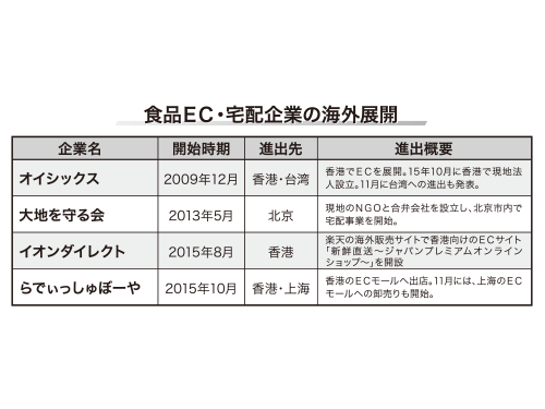 〈食品宅配・EC各社が本格化〉 海外進出が相次ぐ/富裕層顧客の獲得狙う