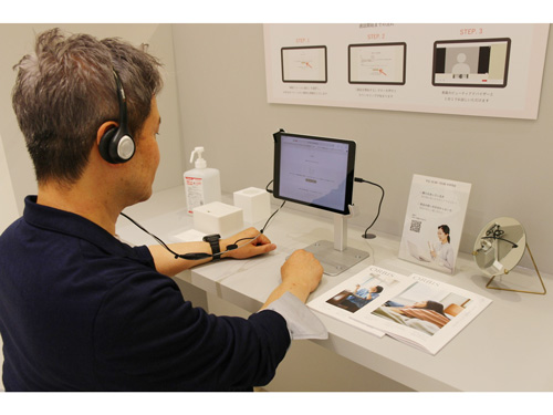オルビスの無人店舗では、離れた場所にいる美容部員から、オンラインカウンセリングを受けることもできる。オンラインカウンセリングは、店内のカウンターに設置してあるタブレット端末を使って行うという。