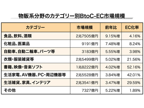 物販EC市場におけるEC化率は同0・35ポイント増の9.13%だった。