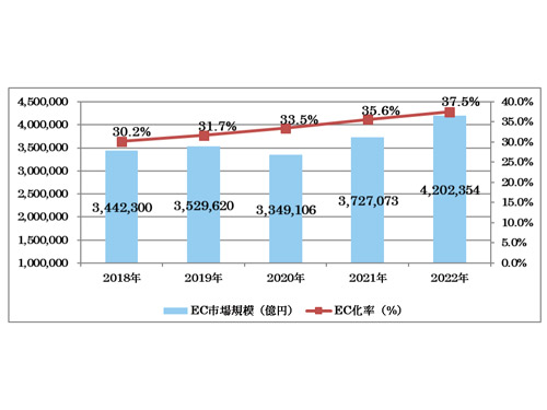 420兆円─。経産省が発表した22年度のBtoB―ECの市場規模だ。この巨大で成長著しい市場に攻勢をかけるべくEC企業の参入が相次いでいる。アスクルやAmazon、MonotaRO、カウネットといったBtoB通販大手は品ぞろえや在庫を増やし、倉庫を拡大する「規模の経済」を生かし成長を加速させる。中小もDXやIT化を推進し、着実な成長を見せている。メーカーやリテール、通販・EC企業も続々と参入し始めており、市場のさらなる活況が予想される。BtoB―EC市場に今、何が起きているのか。動向をまとめた。