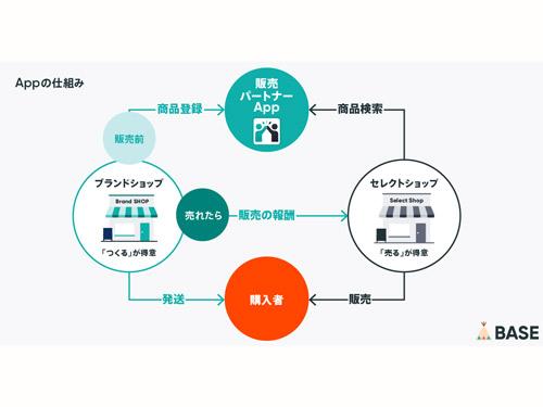 BASE(ベイス)は今夏、ネットショップ作成サービス「BASE」において、カート業界初の店舗間ドロップシッピング機能「販売パートナーApp」の提供を予定している。商品を持つショップの販路拡大や、取扱商品を増やしたいショップが無在庫で商品点数を増やすことができるようにする。