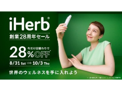 オーガニックな健康食品やサプリ、コスメなどのグローバルECサイトを運営するiHerb(アイハーブ、本社米国、イマン・ザビヒCEO)は8月31日から10月3日まで、28周年を記念したセールを実施している。