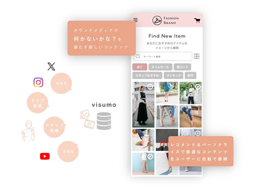 visumo(ビジュモ、本社東京都、井上純社長)は9月26日、ビジュアルマーケティングプラットフォーム「visumo」において、新機能や新テンプレートを発表した。SNSのような体験をECサイトで実現する機能を開発した。ECサイトでコンテンツを効果的活用し、ユーザーのCX(顧客体験)を高める支援体制を強化する。