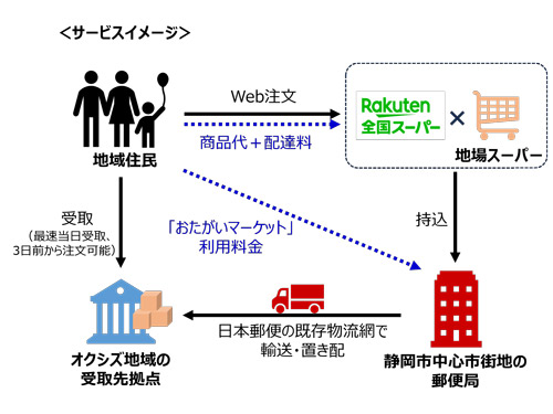 楽天グループ(楽天)は10月22日、日本郵便やタカラ・エムシーと共同で、静岡県静岡市奥静岡地域(オクシズ地域)において、地域住民に向けた買い物支援サービスの実証運用を11月5日に開始すると発表した。楽天と日本郵便は、今回の実証運用の知見を生かし、全国の買い物困難地域の支援を推進していく考えだ。