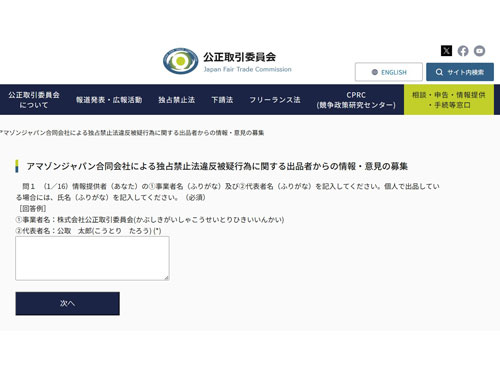 公取委によると、「過去にも、情報提供をサイト上で募集したことはあるが、専用のアンケートページを作ったのは本件が初」だとしている。