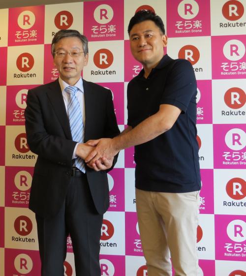 ドローンの開発は3月に楽天と東京大学エッジキャピタル(本社東京都)が7億2000万円を出資した、自律制御システム研究所(本社千葉県、野波健蔵社長)が手掛けた。