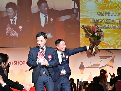 最高賞である総合グランプリには、海産物販売の伝食が運営する「越前かに職人甲羅組(DENSHOKU)」が輝いた。