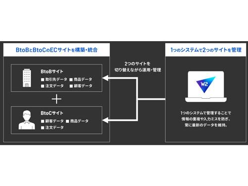ECプラットフォームを提供するW2(ダブルツー、本社東京都、山田大樹CEO)は3月19日、既存のBtoC向けECプラットフォームにBtoB機能を追加した新たなECプラットフォーム「W2 BtoB向けECプラットフォーム」を公開した。BtoBとBtoCの両ビジネスを1システムで運用可能にし、受発注のDX化から販路拡大の実現を支援する。