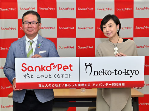 掃除用品のサンコー(本社和歌山県、角谷太基代表)は6月2日、俳優の川上麻衣子が代表を務める一般社団法人「ねこと今日」とアンバサダー契約を結んだ