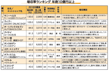 本紙はこのほど、6月9日号に掲載したインターネット通販売上高調査(2016年調査)に基づき、売上規模別増収率ランキングをまとめた。年商10億円以上の企業では、「海外販売の奏功」を増収要因として挙げる企業が目立った。年商10億円未満では、サイト改善やEC専任者の配置など、バックヤードの強化が増収につながったとする企業が多かった。