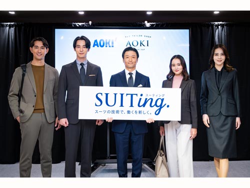 スーツのAOKI(アオキ)は10月8日、事業戦略発表会を開催した。スーツで培った技術を生かし、新たな成長の柱を構築するという。ファッション事業の売り上げ構成比については、「将来的に、ビジネスウェア4割、カジュアル3割、レディース3割を目指す」(青木彰宏会長兼社長)方針を示した。