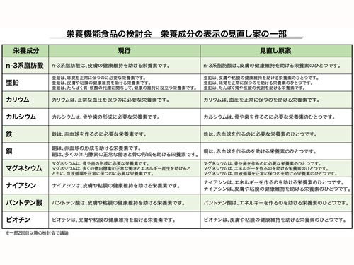 消費者庁は10月8日、「第1回栄養機能食品に関する検討会」を開催し、栄養機能食品制度の見直しに着手した。栄養機能食品について、亜鉛や銅などの配合量の上限値を見直す。ビタミンAなど栄養成分約20品目について、表示する機能を分かりやすく見直すとしている。