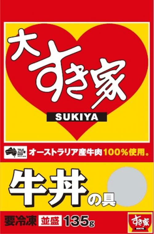 バレンタインデー向け商品のパッケージは、すき家のロゴをアレンジして「大(だい)すき家(や) 牛丼の具」とし、赤い丼の絵をハート形にしている。