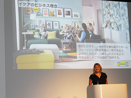 登壇したライス社長は、「ネット通販の売上高は現在、全体の売上高の5%に達する勢いで伸びている。需要があるため、今後もネット通販を強化していきたい」と説明した。イケア・ジャパンの16年8月期の売上高は767億円。