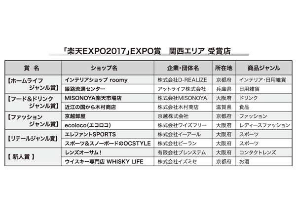 楽天は8月8日、関西エリアの「EXPO賞」を表彰した。同エリアでは店舗のカラーを明確に打ち出し、集客やリピーターの獲得につなげている店舗の受賞が目立った。受賞店に受賞の要因や今後の取り組みについて聞いた。 (続きは、「日本ネット新聞」8月31日号で)