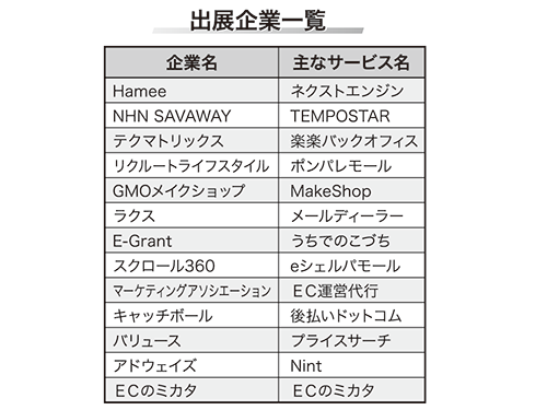 別会場では、共同主催のEC支援会社13社による個別相談会を実施した。