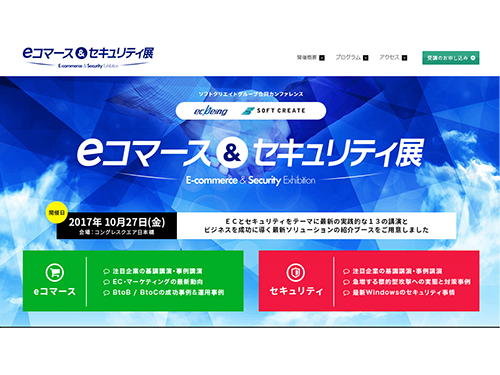 「eコマース&セキュリティー展」は、ecbeingとグループ企業であるソフトクリエイトの合同展示会。アパレルECやオムニチャネル、BtoBなどをテーマにしたセミナーを全13講座実施する。22社の最新ソリューションを紹介するブースも用意している。開催概要は次の通り。
