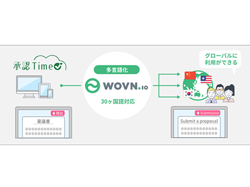 今回の連携でSBIビジネス・ソリューションズが提供するクラウド型のワークフローシステム「承認Time」のユーザーは、ボタン一つで多言語化することができる。翻訳に伴う作業コスト・業務委託コストを大幅に削減することが期待できる。