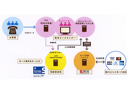 セキュリティー基準「PCI DSS」に準拠した電話放送局とシステム連携することにより、コールセンターで電話注文を受け付けるEC・通販事業者向けにクレジットカード情報の非保持化を実現する「IVR決済サービス」を提供する。