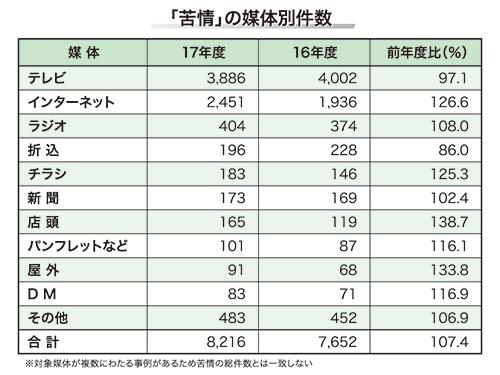 日本広告審査機構/苦情件数は26%増/17年度、ネット広告に対して