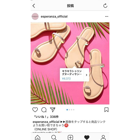 ショッピング機能の利用を開始した事業者は、効果についてどのように感じているのだろうか。靴のブランド「エスペランサ」を運営する神戸レザークロス(本社兵庫県)では、6月8日から同機能の利用を開始した。「サンダルの写真の投稿を行ったところ、227人が写真をタップし、ECサイトには154人が流入した」(広報)としている。「実際に『インスタ』の投稿からECサイトに流入したユーザーを見ると、新規顧客ではなく、ブランドのコアなファンがほとんどだった」(同)と言う。