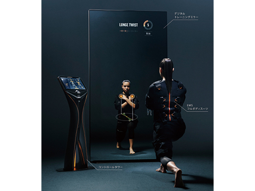 EMSのスポーツジムでは、スポーツジム専用のEMSのトレーニングスーツを着用してトレーニングの動作を行う。利用者は、鏡を見つつ、EMSのスーツが筋肉を刺激するのを確認しながら、トレーニングをする方式だ。トレーニングの時間は1回15分。短い時間で効果的な筋力トレーニングの効果が得られるという。
