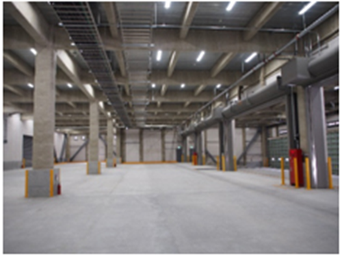 竣工した「厚木IIロジスティクスセンター」は、敷地面積1万6754.55平方メートル、延床面積は3万2903.08平方メートルの規模で、鉄骨造り4階建て。月決めの賃料は1坪当たり4100円を見込んでいる。