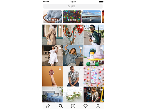 さらに、「インスタ」内の検索画面に「ショッピング」のチャンネルを追加。ショッピング機能に対応した投稿を一覧表示できるようにした。
