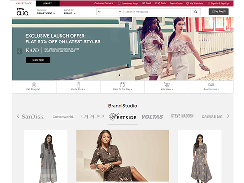 「タタ・クリック」はリアル店舗の在庫を活用したECモール。購入者は宅配や店舗受け取りを選択できる。リアル店舗への送客にも注力しており、実店舗で世界感を伝えたいブランドの要望にも応えている。