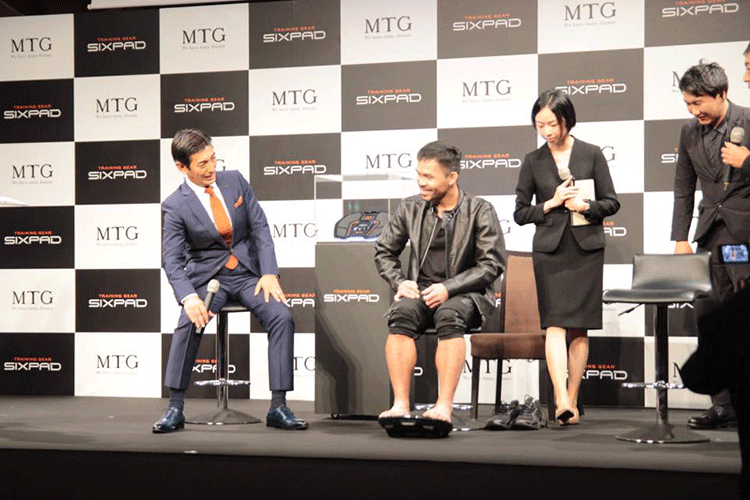 美容機器や健康機器を販売するMTGは9月14日、EMS(電子筋肉刺激)のブランド「SIXPAD(シックスパッド)」から、足の筋肉を刺激するEMS機器「FootFit(フットフィット)」を発売すると発表した。同商品に両足を載せて通電することで、足のさまざまな筋肉を刺激することができる。ロコモティブシンドローム(運動器症候群)のケアにつながることが期待される。同日行われた新商品発表会では、ボクシング世界チャンピオンのフィリピン人、マニー・パッキャオ選手が商品を体験し、PRを行った。