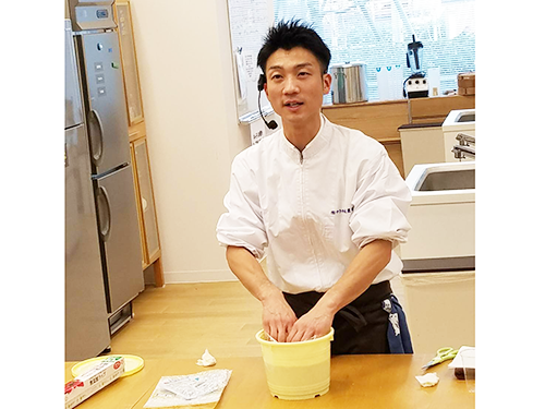 体験会当日は、島根県から講師として、KitOisixで使用する有機大豆、麹を生産する「やさか共同農場」の佐藤大輔社長を招き、おいしい味噌の作り方や楽しみ方をレクチャーした。
