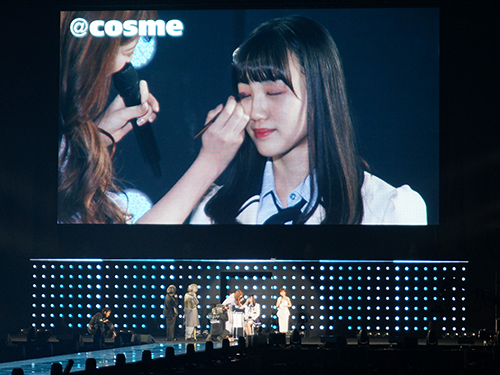 ステージ上では、年1回開催のセール企画「アットコスメビューティーデー」やスマホ向けアプリをPR。ステージ企画の最後には今年12月3日に開催する同セール企画を告知した。
