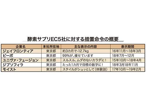 消費者庁/酵素EC5社に措置命令/「容易に痩身効果」の誤認の可能性