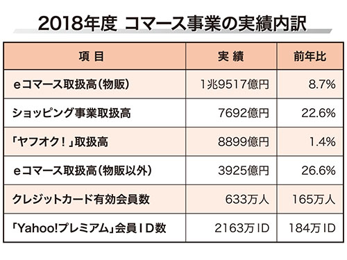 ヤフーの19年3月期連結決算におけるeコマースの取扱高は、前期比11.3%増の2兆3442億円だった。このうち、ショッピング事業の取扱高は同22.6%増の7692億円で、4年連続2桁成長を達成した。ソフトバンクと連携して行ったポイント還元が奏功し、利用者が増えた。eコマース取扱高(物販)は、同8.7%増の1兆9517億円だった。