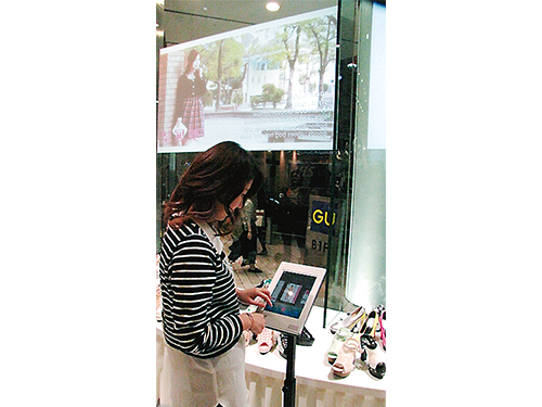 店内にはタブレット端末7台を設置。EC専用商品や在庫切れの商品をネットで販売するほか、商品を持ち帰りたくない顧客にもECの利用を促す。