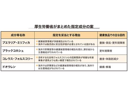 厚生労働省/プエラリアなど4品指定へ/「特別の注意を要する成分」として
