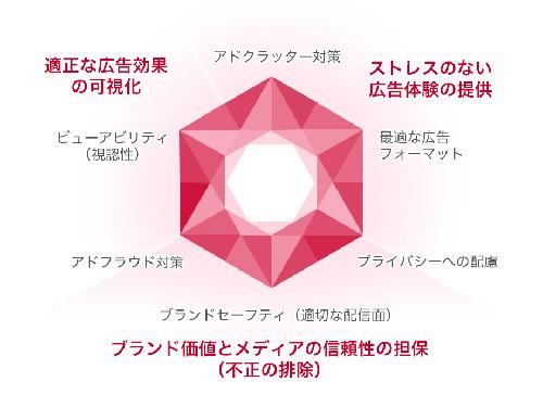 今年5月9日には、ヤフー独自の広告規定「広告品質のダイヤモンド」を発表(図参照)。同27日には、広告品質向上の取り組みについて、報道陣に対し発表会を行った。